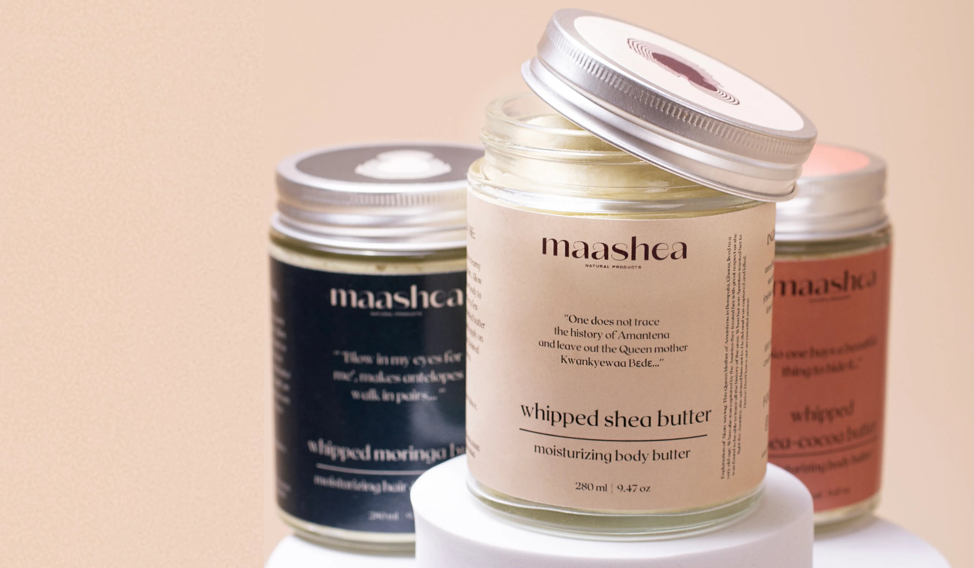 Welcome to MaaShea!Hi and welcome to MaaShea! The online natural skincare platform for everyone. We strive for pure quality natural skin care products from Ghana, whilst giving back to the communities... Welcome to MaaShea!Hi and welcome to MaaShea! The online natural skincare platform for everyone. We strive for pure quality natural skin care products from Ghana, whilst giving back to the communities...